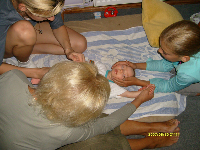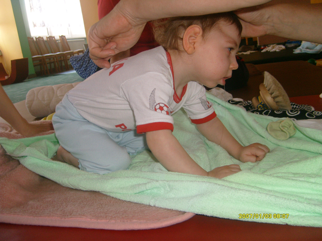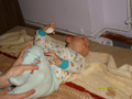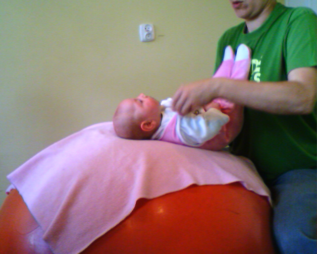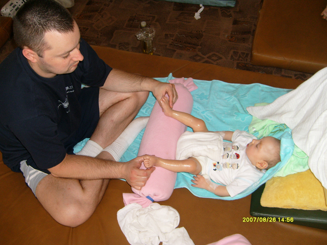 Zuzia rehabilitację rozpoczęła mając 14 dni. Na początku przychodziła do nas Pani Beatka (rehabilitantka szpitalna) pokazywała nam jak mamy ćwiczyć rączki i nóżki.. Rozpoczęliśmy również rehabilitację metodą Vojty. Jednak ze względu na duże uszkodzenia mózgu u Zuzi pojawiło się wzmożone napięcie mięśniowe, z którym walczymy do dziś . Jej nóżki nie dosięgały podłoża, ale to dopiero był początek… wręcz cisza przed burzą.