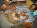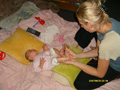 Zuzia jest intensywnie rehabilitowana. W domu ćwiczę z nią ja, czasami trafi się jakaś dobra dusza do pomocy w postaci wolontariuszki, ale teraz to już rzadkość…Zuzia wykonuje ćwiczenia trudne, wymagające od osoby ćwiczącej dużego zaangażowania czasu oraz sił. Ponieważ Zuzia nadal nie robi żadnych postępów to ta praca jest jeszcze trudniejsza i łatwo przy niej o zniechęcenie. Dzięki akcji „Panny Młode” zakupiliśmy viofor, mamy również lampę biotron, którą naświetlamy Zuzię, dostaliśmy matę ozonową od Fundacji Jurka Owsiaka. Dzięki Państwa pomocy zakupiliśmy materace, piłki, wałki, kliny, poduszki , za co jesteśmy niezmiernie wdzięczni i bardzo dziękujemy. Teraz marzy nam się stół do ćwiczeń, fotelik… |
